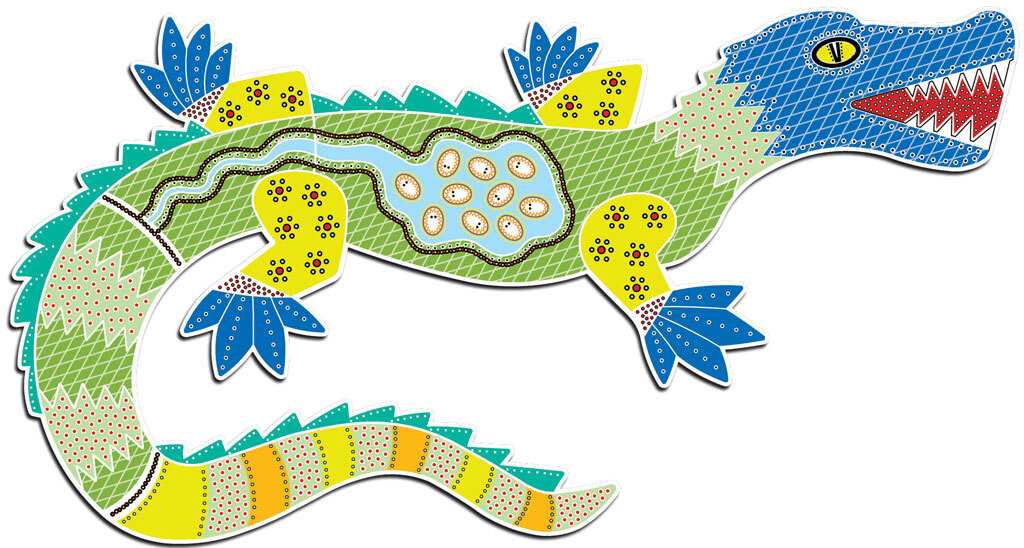 This Aboriginal Art - Crocodile Table Puzzle table is a free form puzzle that will fit onto a table top or a desk. When lack of space is an option this Table Puzzle will do the job. The pieces are chunky and therefor easier for small fingers to move into their correct positions. This table puzzle has been cut in a free form manner so that the image is not contained by a frame and the positive and negative space recognition is different to a Tray puzzle and therefor extends the learning of this very important skill.