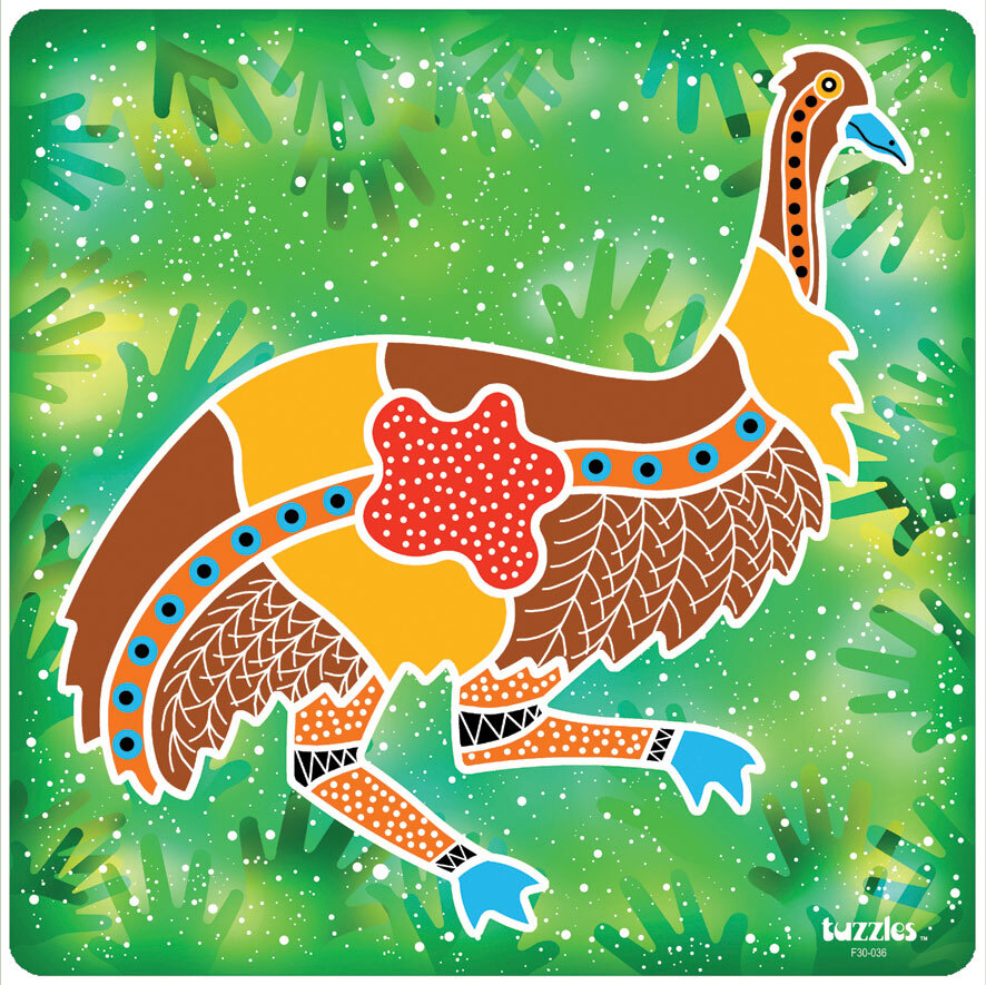 The Emu is a large Australian land bird. The Australian Aboriginal people used the animals of the land for their food and therefore in their stories. Our puzzle of the Emu has 14 pieces, is a larger tray puzzle and therefore has larger pieces. Children will have no difficulty in holding the pieces in their hands as they improve their skills of fine motor and hand eye co-ordination. This Flat Tray wooden puzzle is a great next step puzzle after raised puzzles.