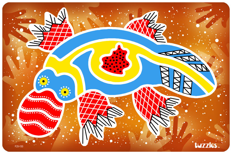 Part of the Tuzzles Indigenous range of puzzles this Platypus puzzle has lots of colour and different shapes to make it an interesting and a great learning experience. It is a Flat Tray wooden puzzle and the pieces are shape cut to the pattern of the Platypus shape.