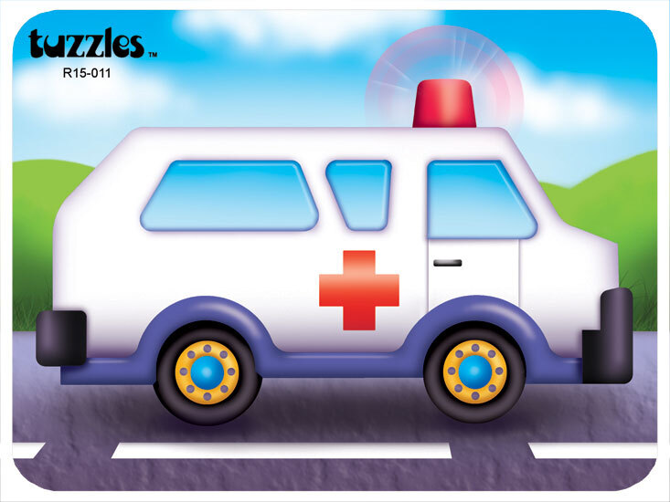 A wooden puzzle of an Ambulance, part of our emergency services puzzles. This puzzle has a minimal background to help children concentrate on the task at hand. The raised pieces allow small fingers to grasp the pieces easily.