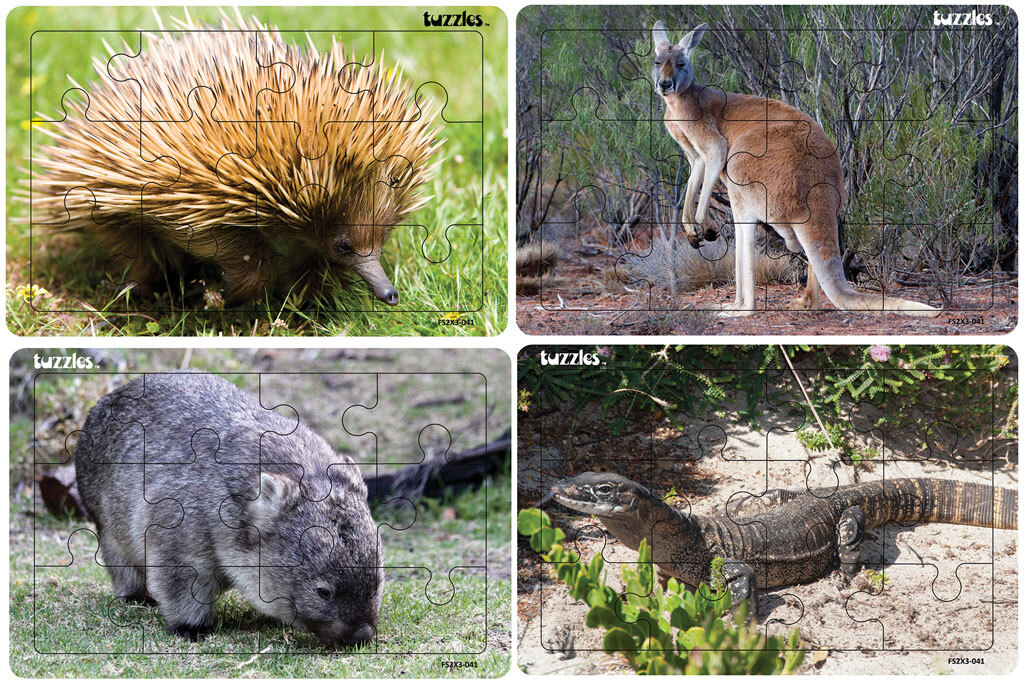 Four beautiful images of Australian animals are shown on this set of 4 Flat Tray wooden Photographic puzzles.