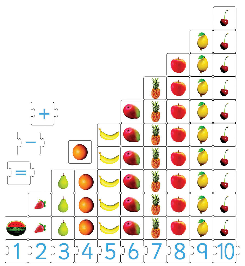 This wooden Floor or Table puzzle maybe used as an early understanding counting and addition puzzle. The tiles are cut so they may be moved around easily and into lots of combinations. This is good product for helping with early maths understanding.