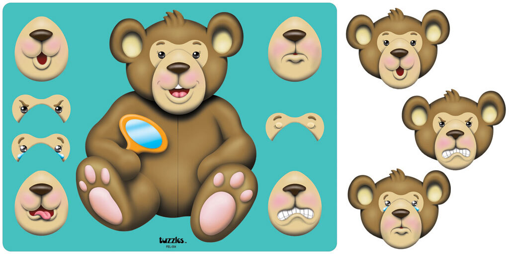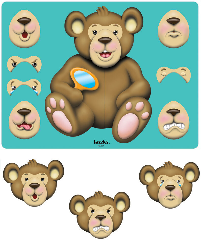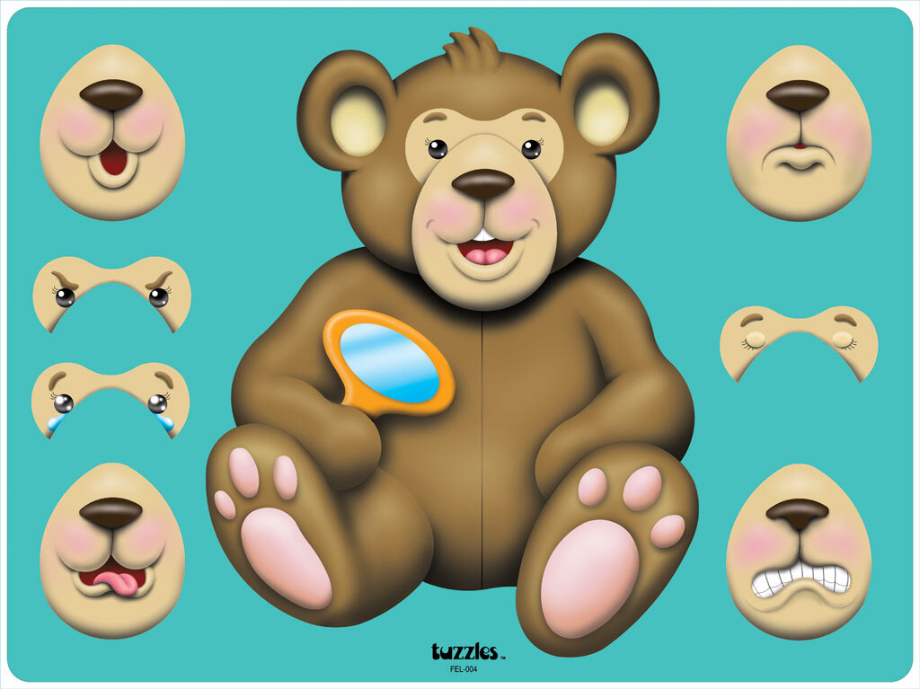 Bear Expressions, part of our emotional literacy range, helps children understand and relate to the many facial expressions they see around them, assisting their understanding of feelings and the emotions of others around them. They can experiment on the bear by just changing the eyes or the mouth. This is also a 21 piece raised puzzle and will help develop other early developmental skills.