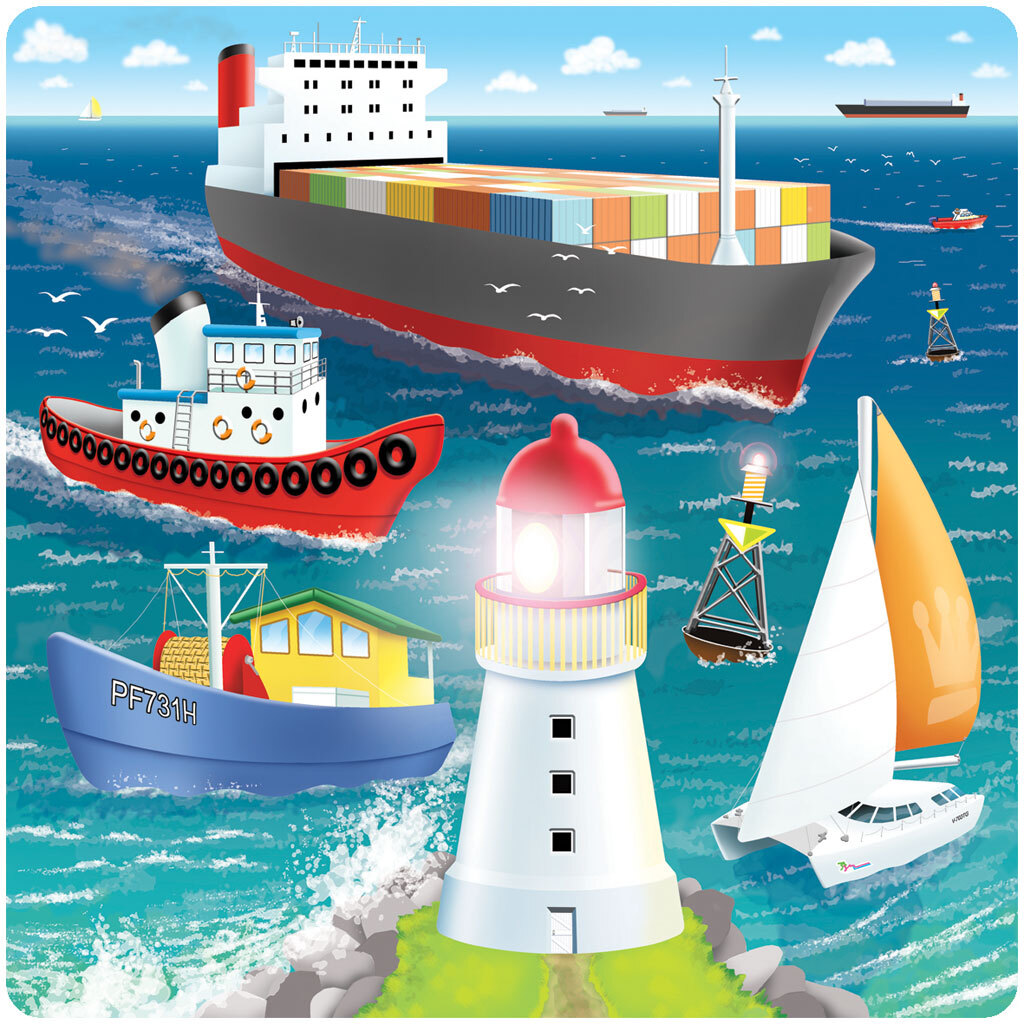 This is a busy shipping lane with all types of water transport This exciting puzzle helps develop the natural interest of children in water transportation. Through play they will improve their memory and fine motor skills. The pieces are raised to help small fingers move and place the pieces and the whole picture puzzle presents them with a little extra challenge.