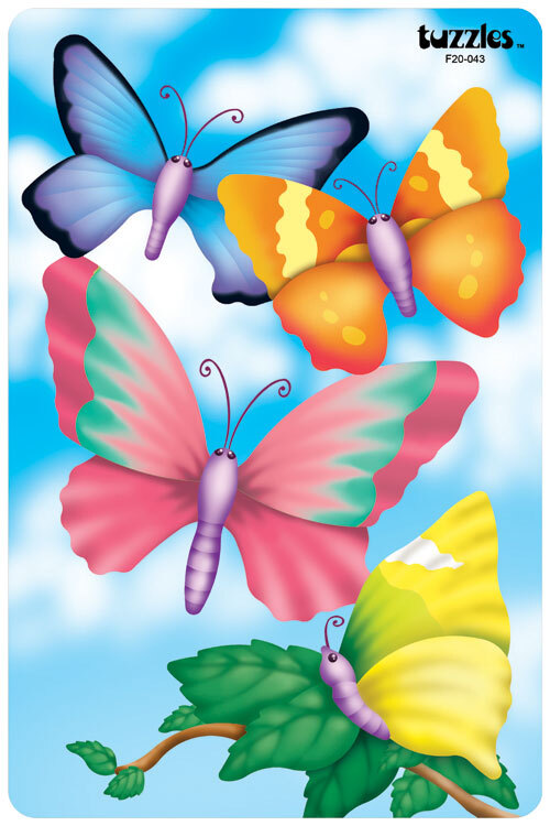A Flat Tray wooden Puzzle depicting many different coloured Butterflies. This puzzle is great for shape recognition and of course fine motor co ordination, plus the different shapes and sizes of the Butterflies wings make the puzzle an interesting challenge no matter what your age.