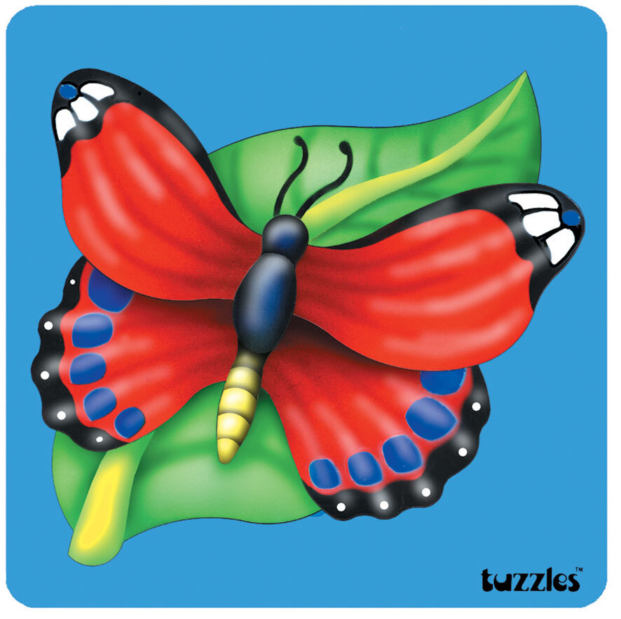 A whole picture puzzle of a Red Butterfly on a Leaf. The puzzle is starting to get a little harder as more shapes have been added to this Butterfly. The whole picture and the random shapes introduce a more complex task and the student has to grow their shape recognition skills to complete the task.