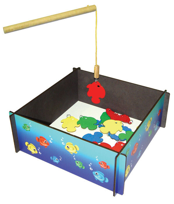 Use the magnetic fishing rod to remove the rubbish from the pond and then you can catch your fish. This game comes flat packed in a calico bag for storage. The pond is made of 4 slot-together pieces which are easily assembled. Then just place your pieces inside the pond and start fishing!!
