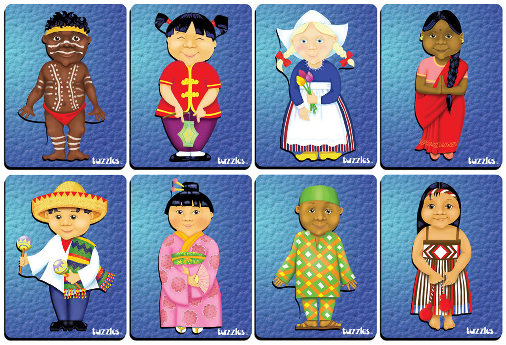 Children will enjoy discovering the different appearances of children from all over the world while playing with these bright and colourful wooden puzzles. The raised pieces make it easier for little fingers to manipulate. This set of 8 puzzles fits into a compact wooden box for easy storage.