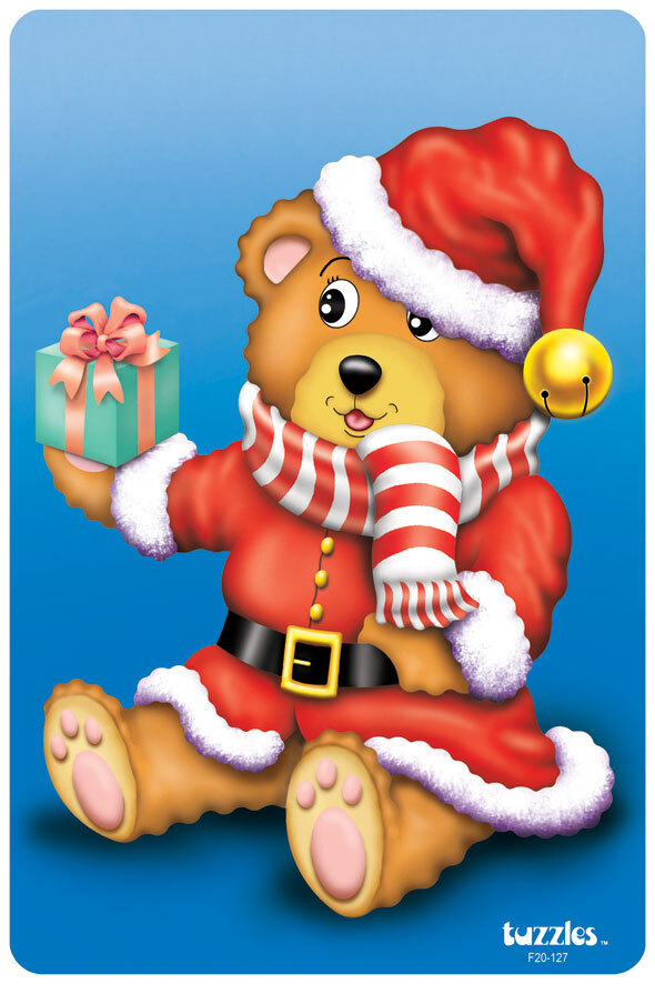 Learning can be lots of fun. Our Flat Tray wooden Christmas Present Bear puzzle teaches children their basic skills using a subject that they can relate too. Christmas and Bears, soft and warm. The Bear is giving a present-with 15 pieces children who have started puzzles this year will be ready for this slightly harder challenge by Christmas time.