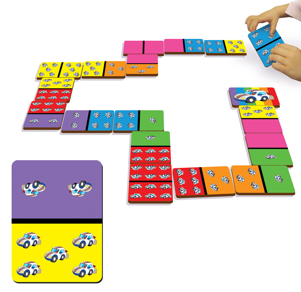 A beautiful colourful version of the classic dominoes game. Start with the Rainbow Tile then place the dominoes by matching colours and cars. Thick cut wooden pieces, ideal for the table or the floor,plus a handy storage bag makes this a great game to keep in the cupboard or classroom.