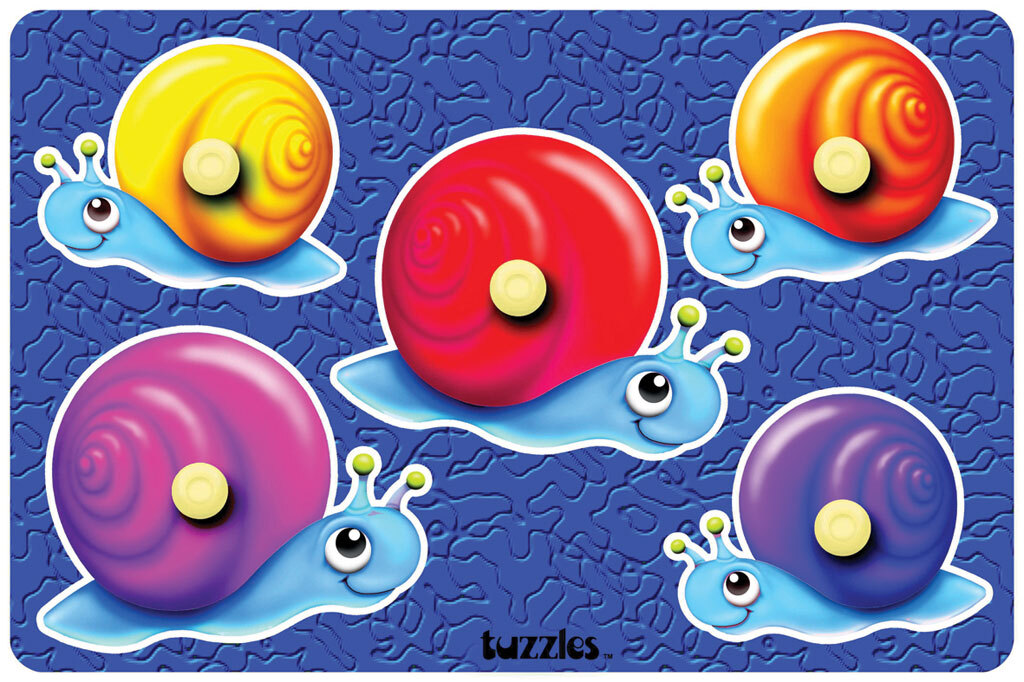 These colourful Snails are all moving in different directions and are different sizes. The children will learn to manipulate these pieces into position using the Easy Grip Pegs located in each piece. This quality wooden five piece Snail Peg Puzzle is an excellent tool to help with early learning skills development.