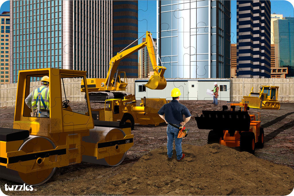 Children love construction machinery and this Tuzzles giant wooden floor puzzle shows an action-packed scene of a construction site. Featuring a digger, roller, front-end loader and a bulldozer, there is plenty to keep everyone interested. Tuzzles giant floor puzzles promote communication and cooperation. Sturdy Tuzzles quality pieces mean that this puzzle will last. Recommended for ages 3 and up.