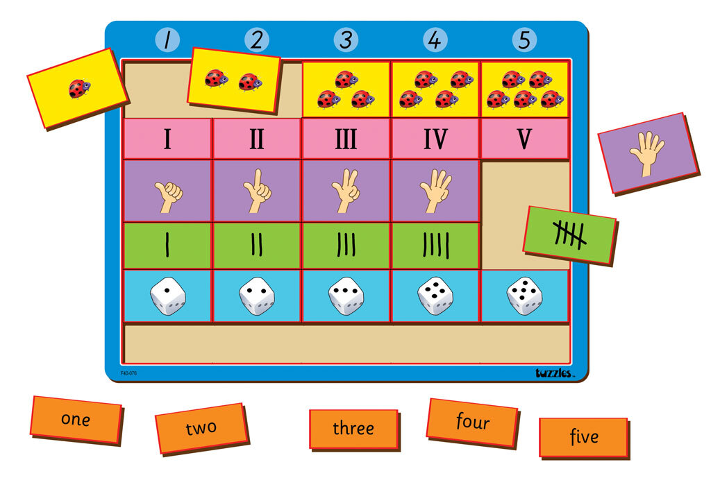 A 30 piece tray puzzle which teaches children the basics of counting by incorporating the different ways we can display numbers. Images, Dots, Tally Strokes and Roman Numerals, are some of the alternatives that will help to broaden children’s understanding of numbers in a fun and colourful way. Counting 1 to 5 is a Flat Tray Wooden puzzle.