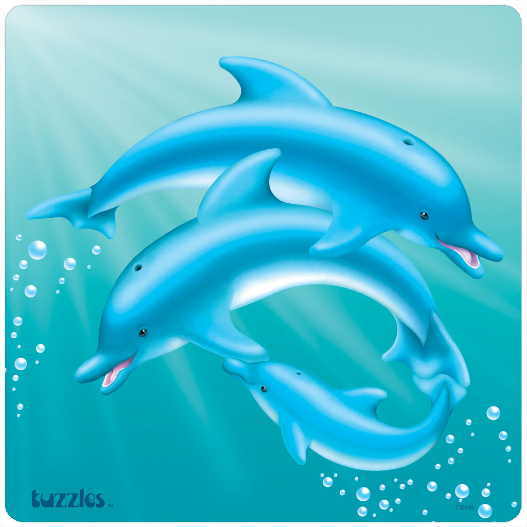Part of the Family series of puzzles Dolphin Family is a Flat Tray wooden puzzle showing mother, father and baby Dolphin. The pieces come out of a shaped border frame and allows the children to start to see the negative shape and then the positive shape of the pieces as they find their correct locations. This puzzle is a good next step from Raised piece puzzles.
