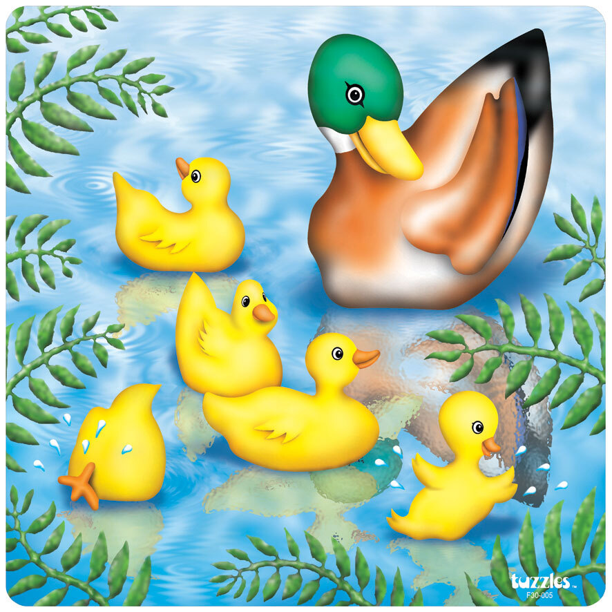 Also in the Family Theme this Flat Tray wooden puzzle shows a mother and her babies swimming in the pond. With an uneven border, this puzzle allows more recognisable shape placement and is an excellent tool for extending learning. This cute image of a Mother Duck with her babies is part of the Mothers and Babies range.
