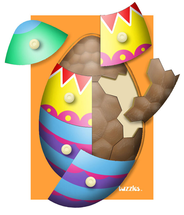 A two layer puzzle with two degrees of difficulty. The top layer has Pegs to help the younger child or a person with decreased fine motor ability. It can be used with the 2nd layer in place, only asking them to place the colourful Egg pieces into the frame using the Pegs located in each piece. However, the bottom layer may also be emoved as a greater challenge. No Pegs and pieces that have specific locations. A very versatile multipurpose learning tool.