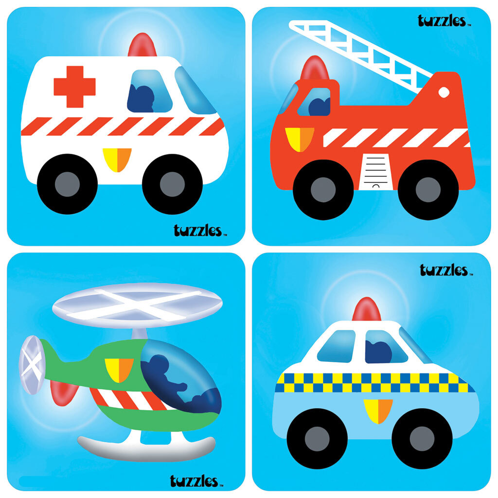 These cute little puzzles are bright and colourful with raised pieces to help children successfully complete their task. Each puzzle depicts a different emergency vehicle. The four puzzles nice chunky pieces.