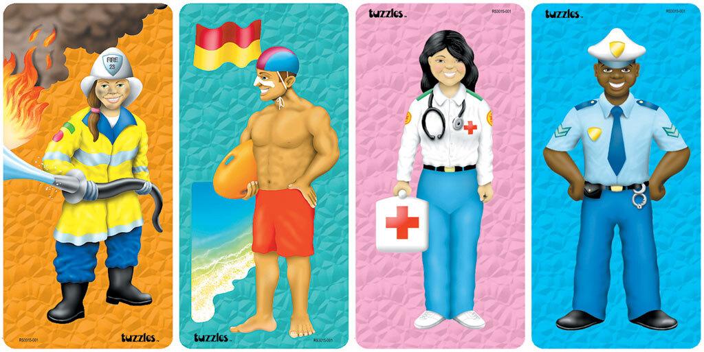 A set of 4 Raised piece puzzles showing people who help in our communities. The Policeman, the Lifesaver, the Ambulance officer and the Fireman all important occupations.