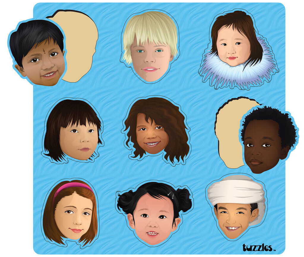 Learn about different cultures and ethnicity with this nine piece Tuzzles wooden jigsaw puzzle. Featuring raised pieces for easy manipulation, this puzzle is a great way to spark conversation about cultures or to discuss multiculturalism. This puzzle is recommended for ages 18months and up.