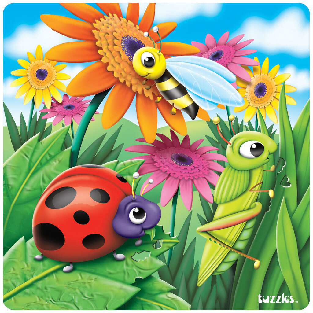A Raised Wooden Tray Puzzle which features some of the insects you will find down in the grass and in the garden. Lots of bright colourful images of the creatures and shaped cut puzzle pieces to increase the difficulty of the puzzle.