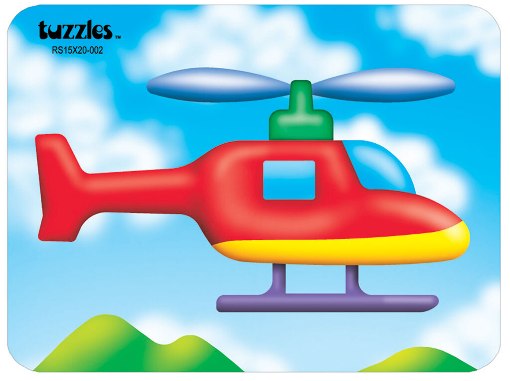 The wooden puzzle of a Helicopter has the pieces raised to assist small finger manipulation of the pieces. Designed to be the next step up from Peg puzzles this puzzle with it's bright and colourful imagery will encourage participation in this puzzle activity.