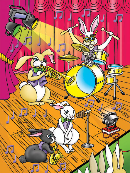 Jazz Rabbits is another Tuzzles Discover puzzle. Just look at those Rabbits playing their musical instruments. Put all the pieces together and then look for all the images that are hidden inside the picture. This puzzle is good for children who need a little more incentive to participate in puzzle activities or children who enjoy finding more. This wooden puzzle is a Table Puzzle so does not have a frame.