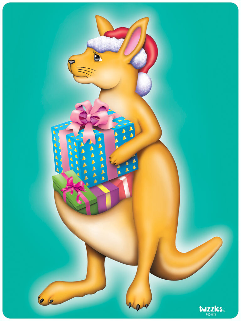 This Flat Tray wooden puzzle is a larger version of one in our 200x300mm section. A Kangaroo dressed as Santa is a fun way to encourage children to do puzzles. This is a great next step after raised puzzles as the pieces are larger and the shapes are therefor more recognizable. the puzzle is called Kangaroo Santa.