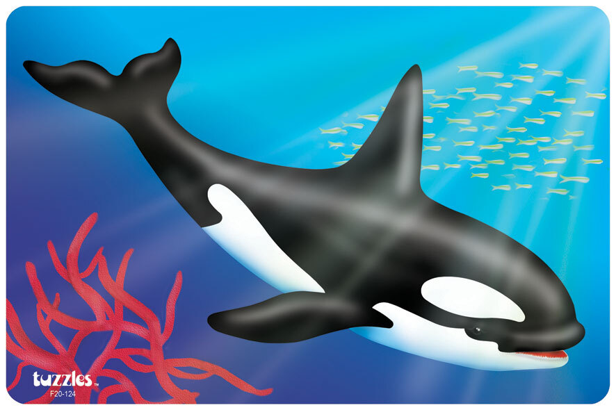 A Flat tray wooden puzzle of 10 pieces. This realistic illustration of a Killer Whale gives the children an opportunity to appreciate the beauty of our endangered sea creatures as they learn their pre-reading and writing skills. The degree of difficulty is easy so this puzzle is suitable for quite young bright children.