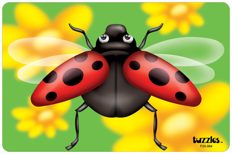 This Flat Tray wooden Puzzle shows us an enlarged version of the tiny Ladybird. The image shows the Ladybird with it's wings spread over the top of the flowers. This attractive image is a favorite and part of our Insects range of puzzles. Children will engage in activities if they find the subject matter is of interest to them. At Tuzzles we understand this and try to make puzzles which encourage them to learn.