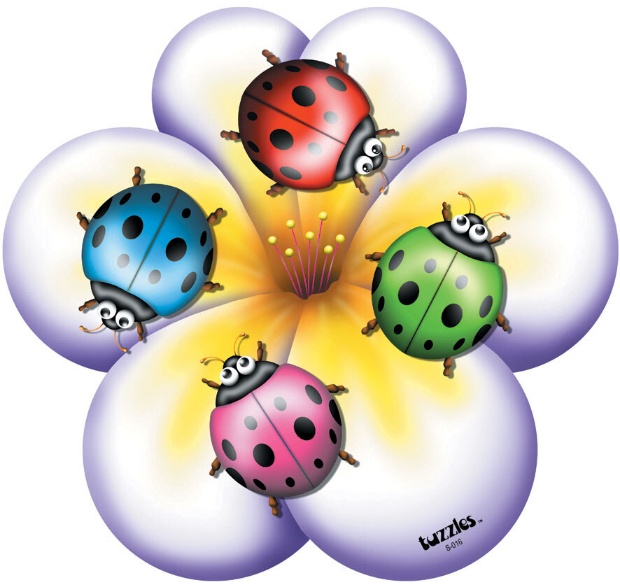 Four beautiful ladybirds are sitting on this daisy. The puzzle is raised so small fingers may change the pieces around easily and the ladybirds have interchangeable pieces.