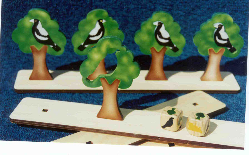 By the spin of the spinner, the aim of the game is to have four trees and four birds. You must have a tree first, then a bird may be placed in a tree. If you spin the bulldozer, you lose your tree and if your tree has a bird you also lose the bird. This is an exciting game with lots of friendly competition and realistic consequences as children experience just how fragile a habitat may be.