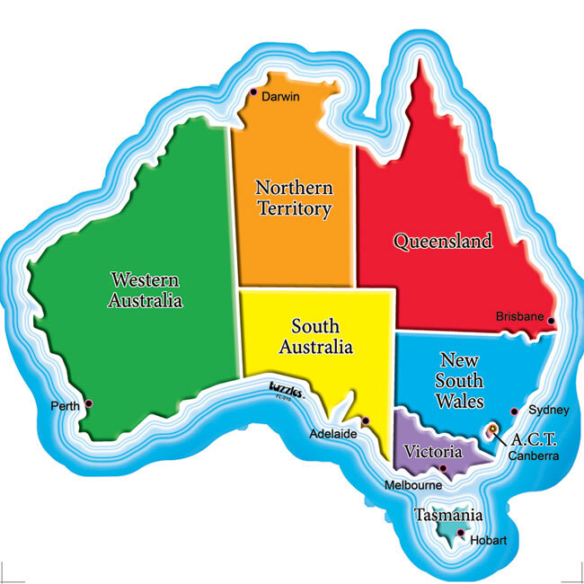 Tuzzles large Map of Australia puzzle is a great group activity. The puzzle clearly shows all the states of Australia and also the capital cities. A great learning activity.