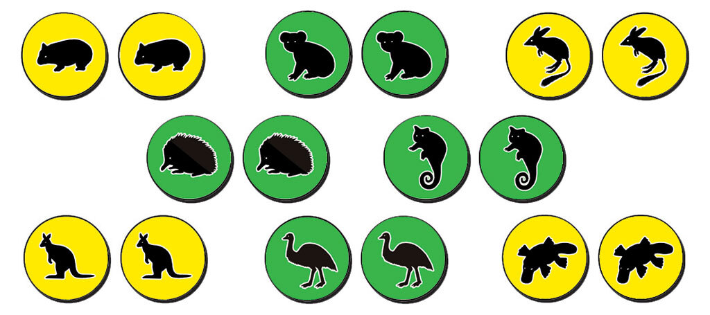 A set of 16 brightly coloured Memory Match Tokens for use with the Tuzzles Memory Match Game. Silhouettes of Australian Native Animals will help children to improve their visual memory skills as they identify each hidden pair of iconic animals.