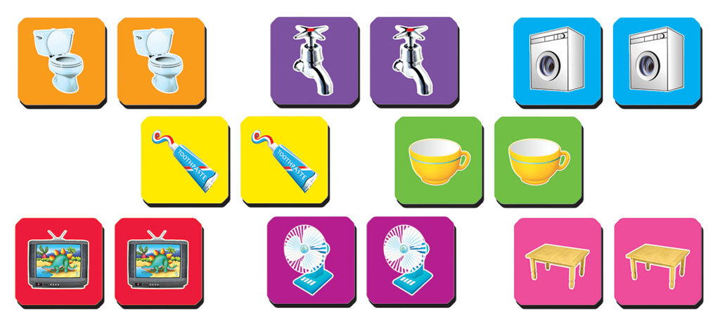 A set of 16 colourful Memory Match Tokens for use with the Tuzzles Memory Match Game. Familiar objects from around the home will help children to focus on the challenge of finding pairs and improve important visual memory skills.