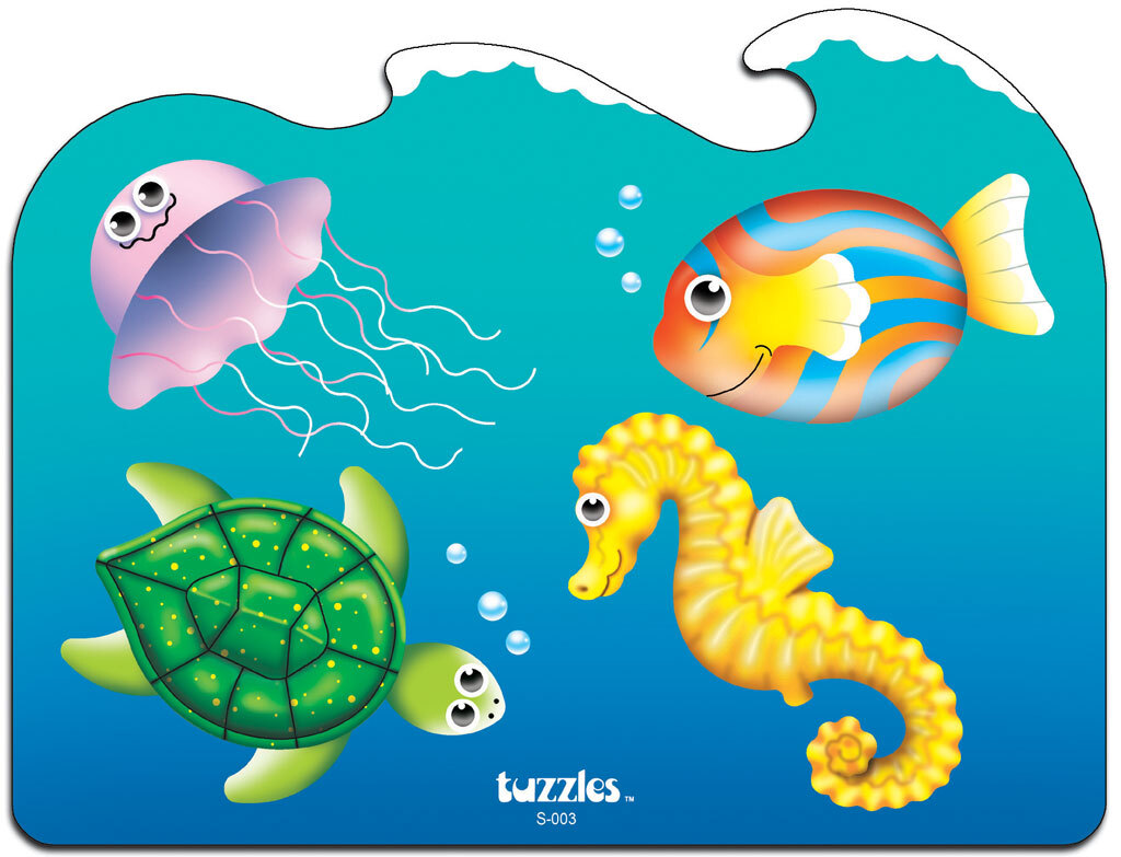 The shape puzzle of the ocean is one of the harder puzzles in the shape puzzle collection. Each animal has been cut into extra pieces to present a harder challenge to the children. These colourful sea creatures present an interesting and informative task for the children.
