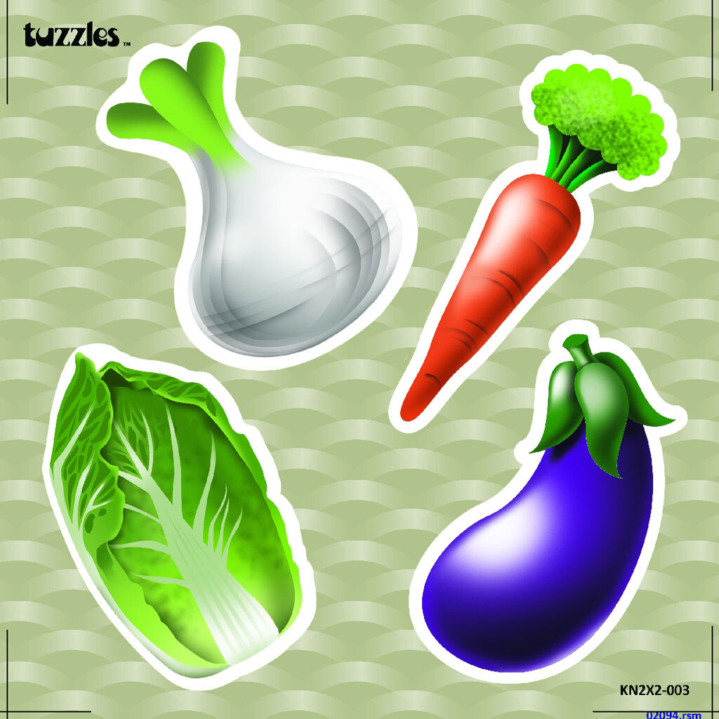 A Wooden Single Peg Puzzle featuring the vegetables that we see in our daily lives. Bright and colourful with pieces that differ in size and shape, this puzzle will encourage participation in early learning activities. The vegetables featured are an onion, a carrot, an egg plant and lettuce.