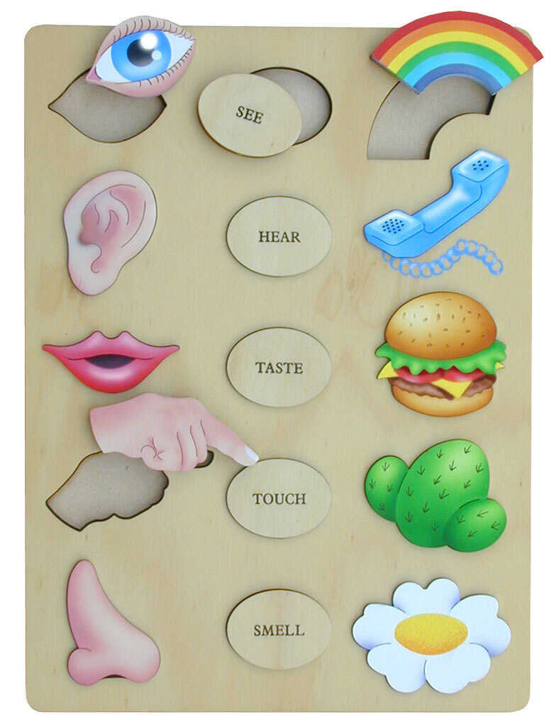 Our Senses is an important early learning tool. Children can match the eye with the rainbow etc. and then they can put the correct sense in the oval hole. Children will soon learn to recognise the correct word. This puzzle has been made using the English language but may also be made using other languages. Our Senses is a Raised Tray Puzzle.