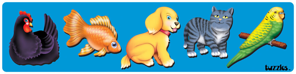 This Tuzzles chunky puzzle shows five commonly encountered pet animals. All pieces are raised up and chunky making them easy to grasp and manipulate. Featuring full-color images and Tuzzles famous quality, this puzzle encourages hand-eye, fine motor and visual perception skills and essential pre-reading skills such as shape and colour recognition. This puzzle is recommended for ages 3 and up.