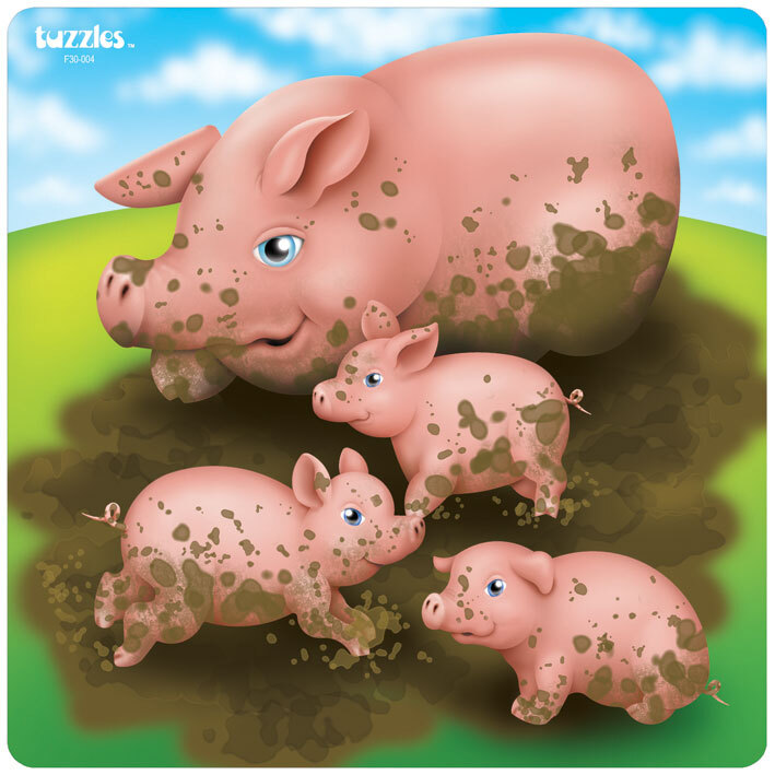 With the Family theme this Flat tray wooden Puzzle is the next step from the raised piece puzzles. It has an uneven border design, which allows more distinct shape definition and helps the child to achieve success in completing the task. This cute Pig with her little Piglets is an interesting puzzle and part of the Mothers and Babies theme range.