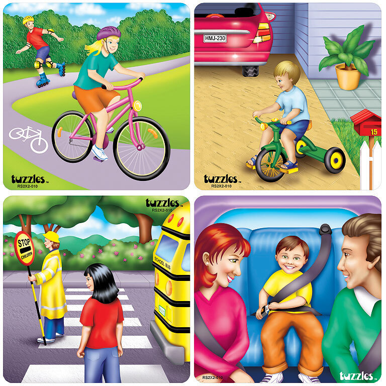 Children can be more aware of road safety by taking an example from this set of 4 raised tray puzzles. The bike, the trike and the crossing puzzles each have 10 pieces whilst the safety belt puzzle has 11 pieces.