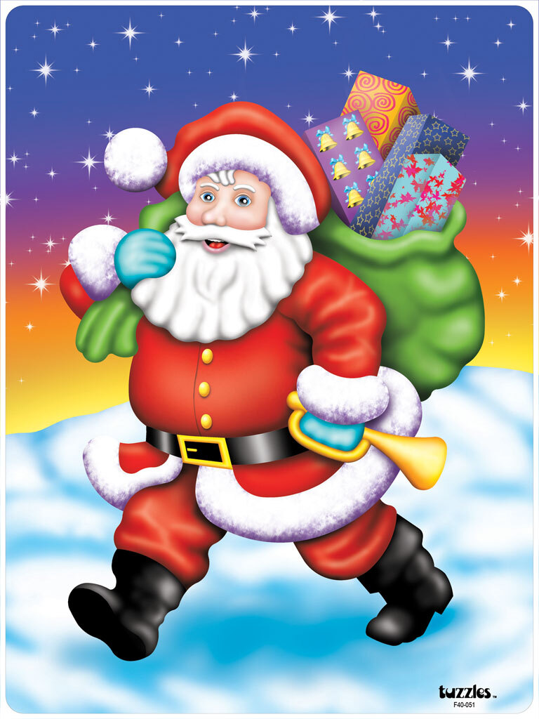A nice big puzzle with lots of precision cut shaped pieces. This Flat Tray wooden puzzle is called Santa and Sack. Shaped pieces help children to understand positive and negative space. The happy image of Santa with those presents encourages children to complete the task and enjoy doing it.