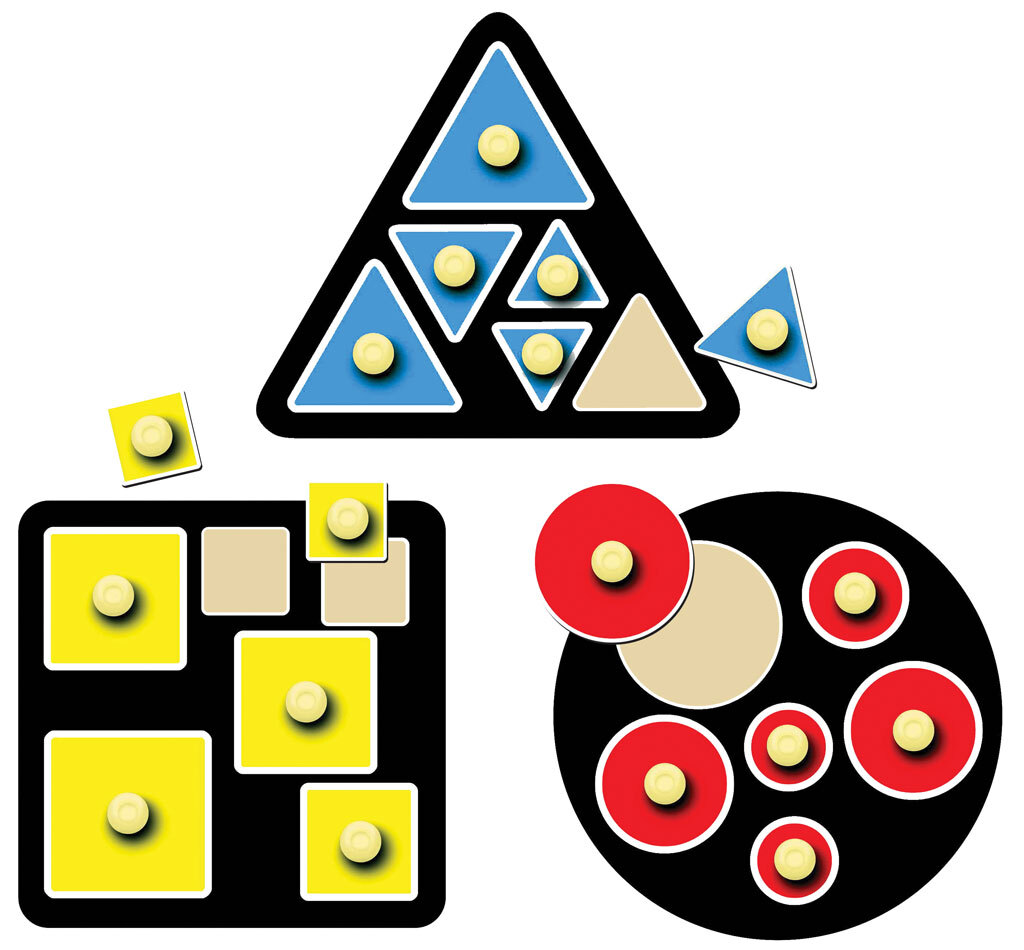 Shapes are everywhere around us and are used every day to create designs and ideas in Science, Maths, Engineering and even Cooking. These 3 puzzles feature black shaped frames, helping to visually reinforce each shape’s distinct characteristics. When inserting the pieces, children must exercise sequencing skills in order to fit the various sized pieces into their correct positions.