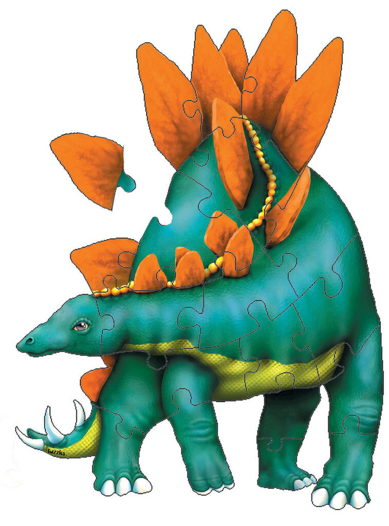 This puzzle offers a challenge as he stands front on, which means that his legs are not just front and back as usually seen. The middle section of this puzzle offers the most challenge. The Stegosaurus is a very popular and he looks amazing when he is all together. Nice big chunky pieces makes this a great learning tool.