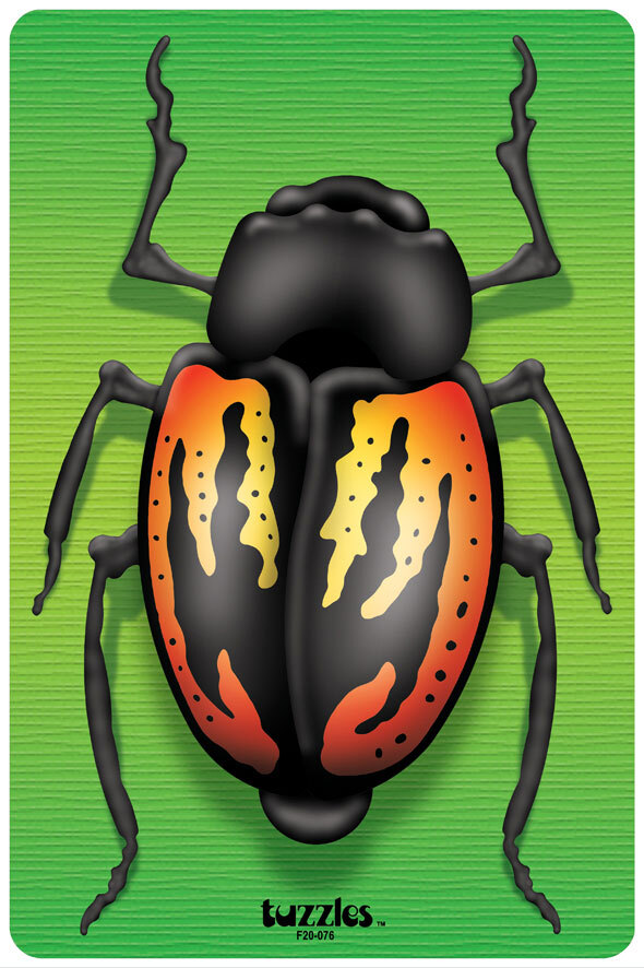 A Flat Tray wooden puzzle depicting the image of a Sternodes Beetle. The pieces of the puzzle have been shape cut to encourage recognition of positive and negative shapes an important part of early learning.