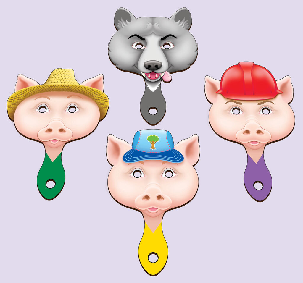 Role Play the Three Little Pigs Story in a small group or in front of the class. Easy to use wooden face paddles will encourage participation even for very reluctant children . Have fun and encourage the audience to participate.