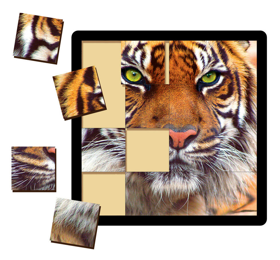 See how fierce a tiger face is. Kids will surely find its way to complete the face of the ferocious tiger and feel the accomplishment of completing this puzzle. This Flat Tray puzzle has the pieces cut into perfect squares. Children will need to recognize the colour continuation to locate the right location of the pieces. This puzzle is in 16 pieces but we also have this image in 36 and 64 pieces which are quite a challenge to even the advanced puzzler.