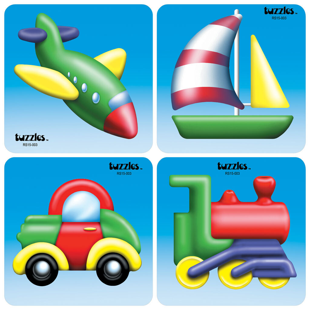 These puzzles are available singley in our 200 x 200 size range or as a complete set in the 150 x 150 size. Each puzzle has a varying degree of difficulty.The Transport Set is a most popular set of puzzles.The pieces are raised for easy manipulation.