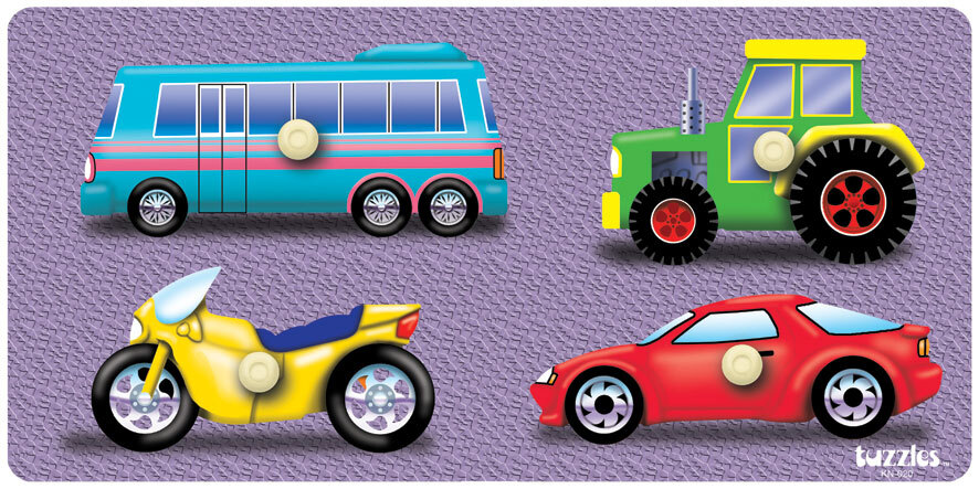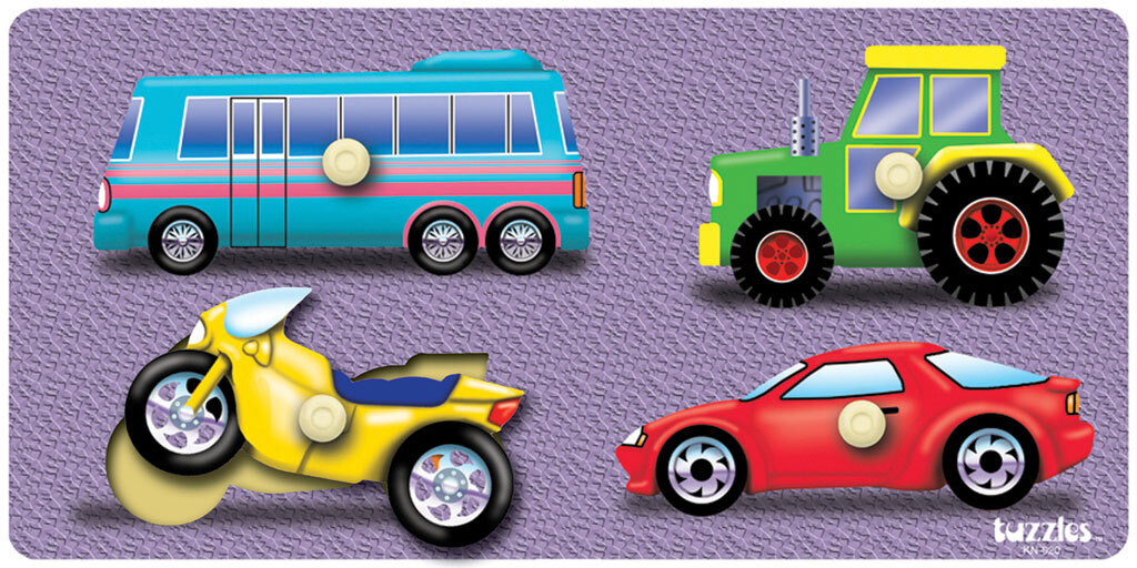 A great first puzzle this Peg Puzzle featuring a Bus, a Tractor, a Motor Bike and a Car will be a favorite puzzle for the young puzzler. Each piece has it's own distinct shape and the bright and colourful imagery will encourage play.