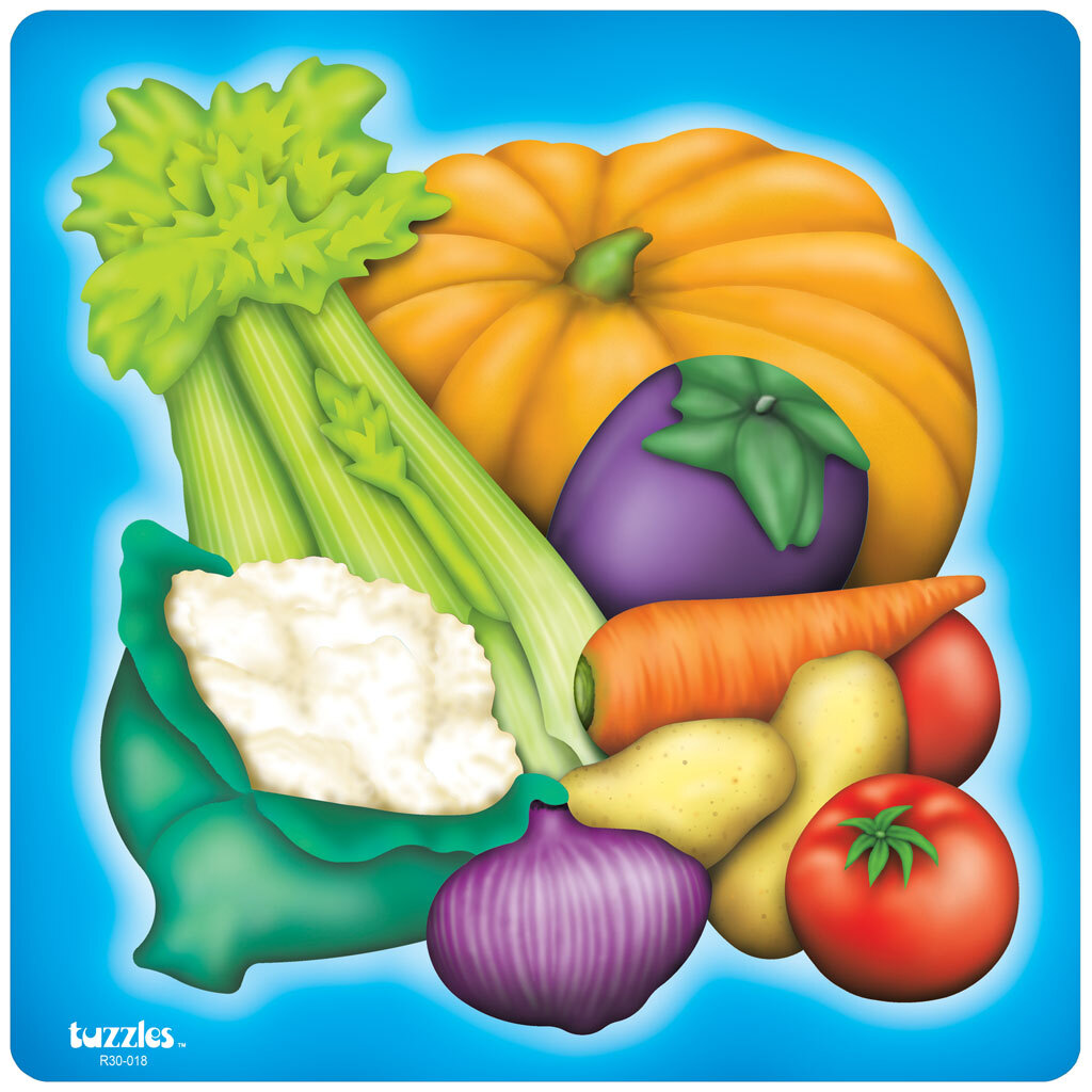 Healthy eating is an important part of early childhood education. This puzzle is a raised tray puzzle with lots of vegetables. The pieces are cut into the shapes of the vegetables and the pieces are raised to help with piece manipulation.
