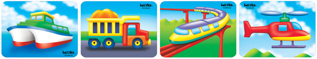Each of the 4 raised puzzles in this set of 4 puzzles is a challenge in itself. The pieces have been raised above the background for ease of manipulation. This set of 4 wooden puzzles features a Catamaran, A Dump Truck, a Monorail and a Helicopter.
